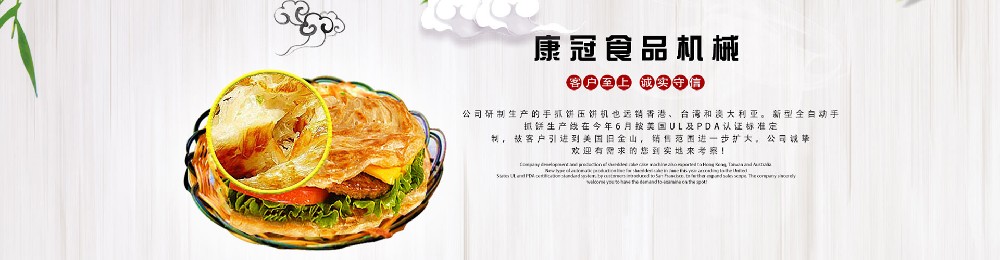 無(wú)錫康冠餐飲管理有限公司是一家專(zhuān)注于中外名小吃引進(jìn)、技術(shù)開(kāi)發(fā)、技術(shù)培訓(xùn)、食品生產(chǎn)、食品機(jī)械的研發(fā)與銷(xiāo)售的綜合性企業(yè)。公司多年來(lái)堅(jiān)持與客戶(hù)同步發(fā)展的思路,堅(jiān)持”客戶(hù)至上,誠(chéng)實(shí)守信“的原則,把產(chǎn)品的實(shí)用性與高效率有機(jī)結(jié)合,經(jīng)過(guò)幾年發(fā)展,客戶(hù)已遍布全國(guó)各地。公司研制生產(chǎn)的手抓餅壓餅機(jī)也遠(yuǎn)銷(xiāo)香港、臺(tái)灣和澳大利亞。新型全自動(dòng)手抓餅生產(chǎn)線(xiàn)在今年6月按美國(guó)UL及PDA認(rèn)證標(biāo)準(zhǔn)定制,被客戶(hù)引進(jìn)到美國(guó)舊金山,銷(xiāo)售范...